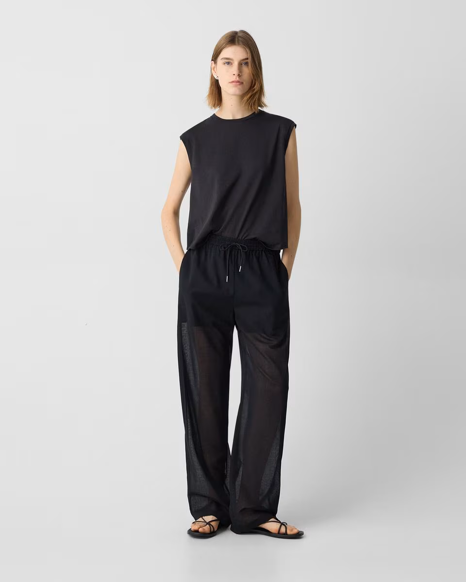 Drawcord Pull-On Pant in Airy Shirting