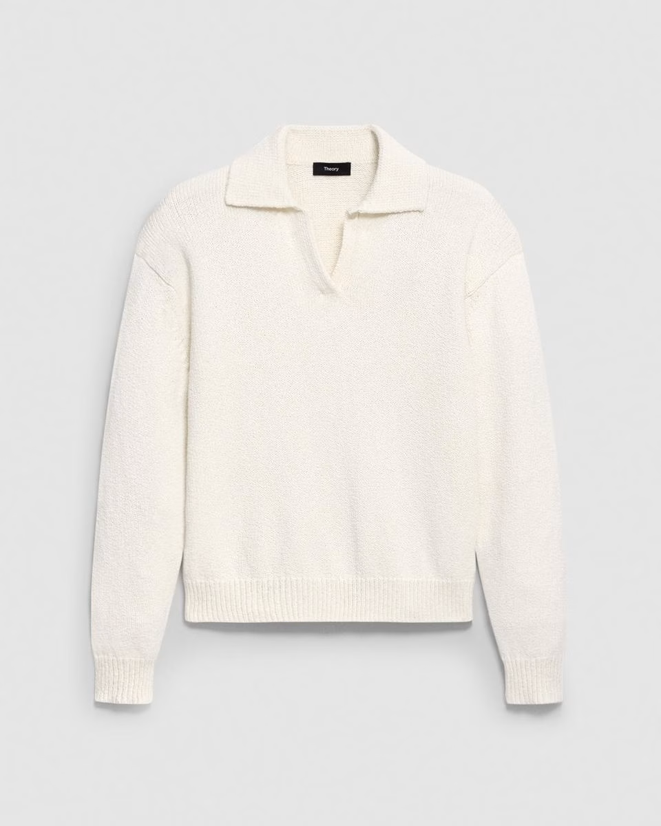 Polo Sweater in Cotton-Wool Bouclé